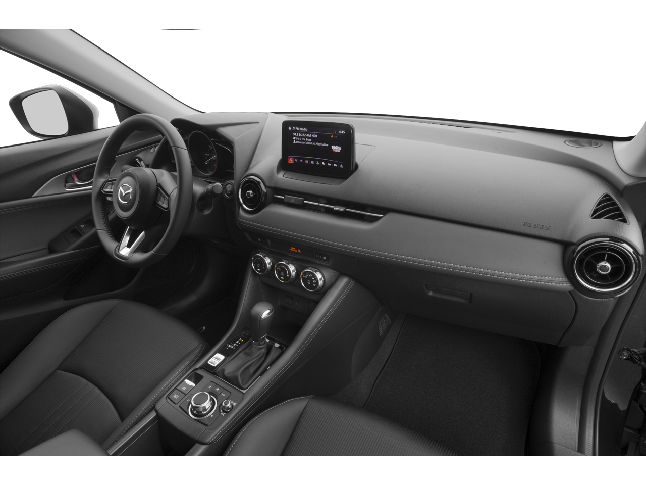 BLACK, LEATHERETTE UPHOLSTERY, MAZDA NAVIGATION SYSTEM