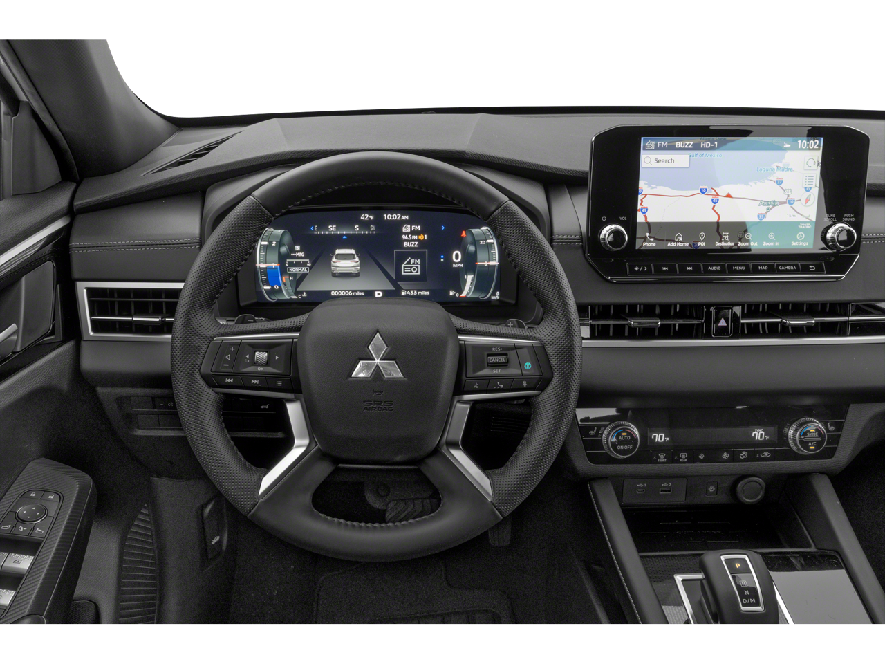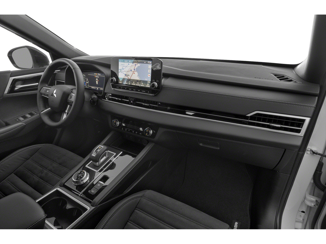- Radio: AM/FM 9.0" Navigation w/Smartphone Link -inc: 6 speakers, Apple CarPlay, Google Android Auto, SXM all-access and SXM traffic and travel link w/90-day subscription, Mitsubishi Connect, HD Radio, Bluetooth® wireless technology, steering wheel controls for phone, audio and voice recognition and USB ports