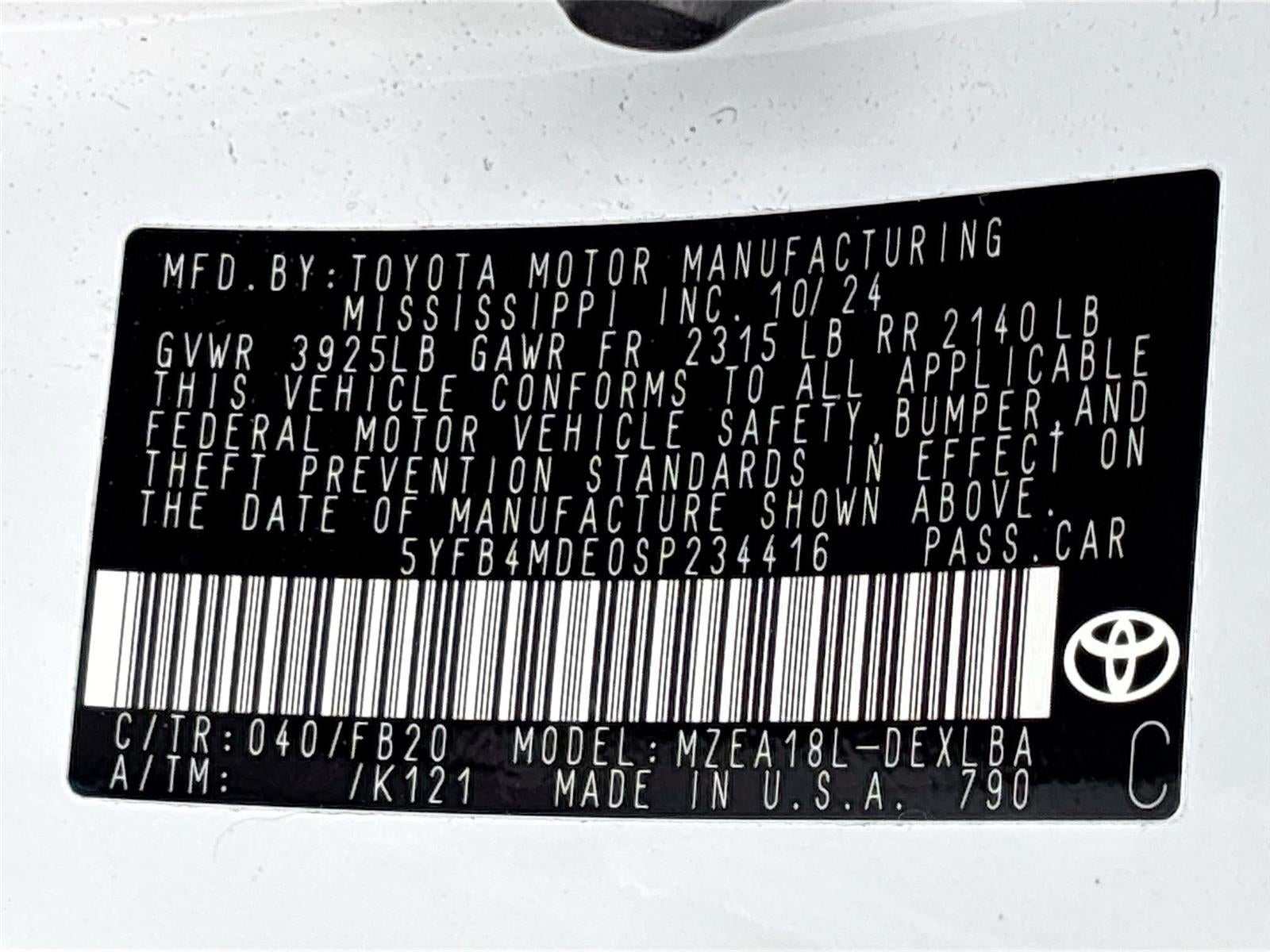 - Vehicle Name: Toyota Corolla